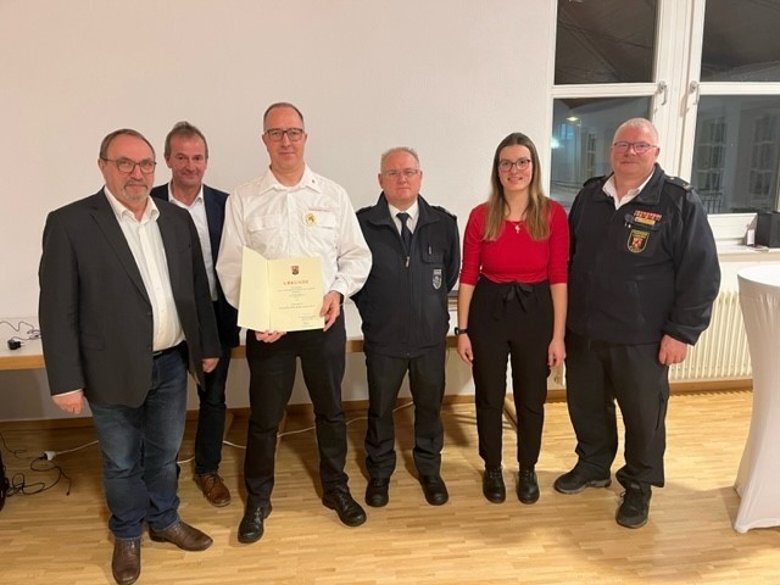 Im Rahmen des diesjährigen Kameradschaftsabends der Freiwilligen Feuerwehr Brücken wurde eine besondere Auszeichnung vergeben: Frank Huber wurde für 35 Jahre Dienst in der Feuerwehr geehrt. Landrat Otto Rubly überreichte ihm das Feuerwehr-Ehrenzeichen in Gold sowie die dazugehörige Urkunde des Landes Rheinland-Pfalz.