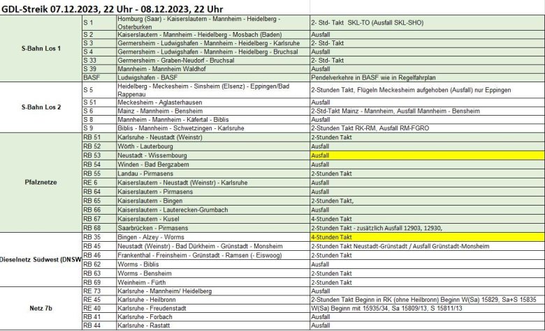 GDL ruft von heute Abend 07.12.2023 um 22 Uhr bis Freitag, 08.12.2023, 22 Uhr zum Streik auf