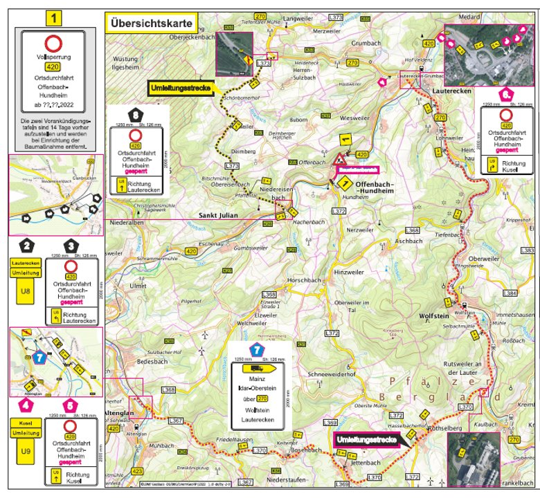 Die Zufahrt von Lauterecken Richtung Offenbach-Hundheim, sowie von Offenbach-Hundheim Richtung Lauterecken ist daher nicht möglich.