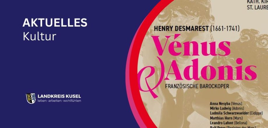 Anlässlich der rheinland-pfälzischen Präsidentschaft der Großregion SaarLorLux und des Kultursommer-Themas „Westwärts“, präsentiert der Landkreis den lothringischen Barockkomponisten Henry Desmarest mit seiner Oper „Venus & Adonis“. Die konzertanten Aufführungen - in französischer Sprache mit deutschen Untertiteln - können dank regionaler Sponsoren in erstklassiger Besetzung aufgeführt werden.