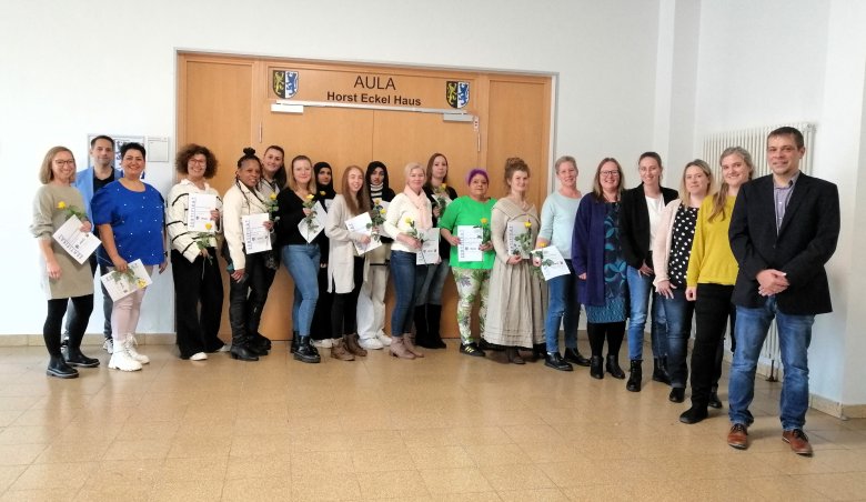 Auf der Grundlage des Kompetenzorientierten Qualifizierungshandbuches Kindertagespflege (QHB) haben sie sich in insgesamt 210 Unterrichtseinheiten und 40 Stunden Praktikum neueste Kenntnisse aus der Frühpädagogik, Angebote zur frühkindlichen Bildung, pädagogische Ansätze und viele weitere Themen angeeignet. Der Qualifizierungskurs fand im „Blended Learning“ statt, Unterrichtsinhalte wurden sowohl online als auch in Präsenz vermittelt.
