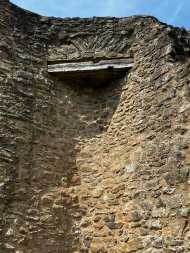 An der nördlichen Ecke dieser Wehrmauer ist oben ein diagonal eingezogener kurzer Unterzug erkennbar. Dies deutet auf das vormalige Vorhandensein eines "Scharwachttürmchens" hin. Vermutlich waren aber ursprünglich beide Enden der Mauer bei ihrem Bau im 14. Jahrhundert mit derartigen Bauwerken versehen, was die Burg noch imposanter erscheinen ließ. (1)