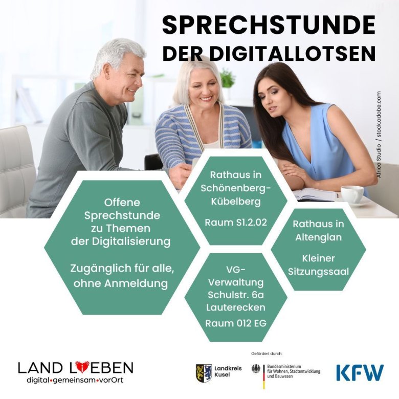 Seit vergangener Woche bieten die Digitallotsen vom Projekt LAND L(i)EBEN – digital.gemeinsam.vorOrt Sprechstunden in den drei Verbandsgemeinden an. Diese Sprechstunden stehen sowohl den Bürgerinnen und Bürgern als auch den Mitarbeitenden der Verwaltungen offen und dienen als Anlaufstelle für Fragen, Unterstützung und Beratung rund um digitale Themen.