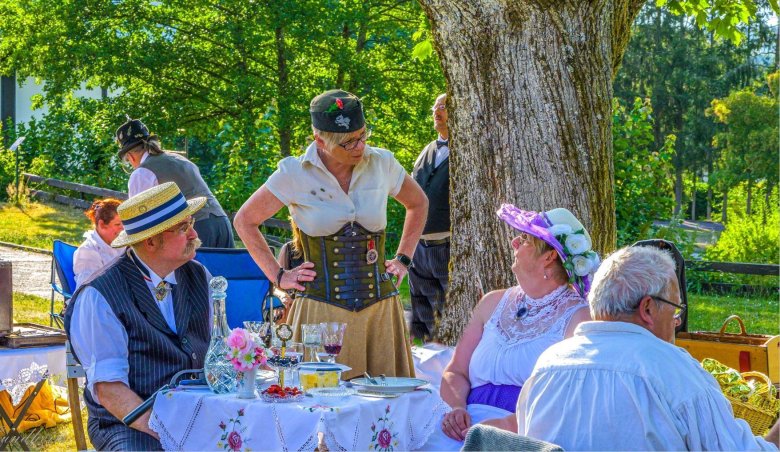 Den Schnurrbart gestutzt, Zylinder gebürstet die Haare gelegt, die Kleider zurecht gerückt, die Schuhe poliert und die Picknickkoffer gepackt und auf geht es zur Burg Lichtenberg bei Kusel.
