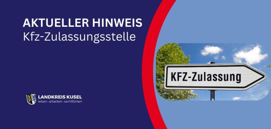 Die Kfz-Zulassungsstelle der Kreisverwaltung Kusel sowie die Außenstellen in Schönenberg-Kübelberg und Lauterecken sind aufgrund einer Fortbildungsveranstaltung am Mittwoch, den 5. Juni ganztägig geschlossen.