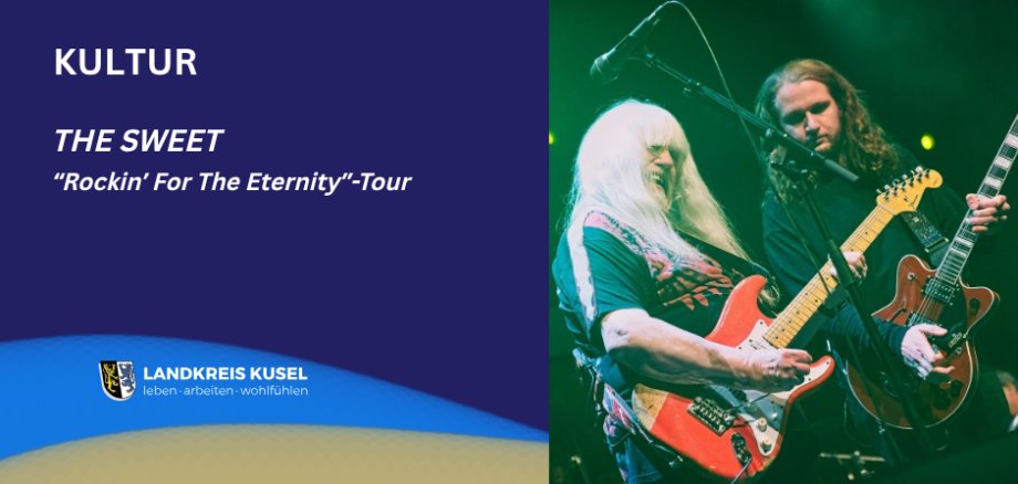 Mit weltweit mehr als 55 Millionen verkaufter Alben gelangen Sweet 34 Nummer Eins Kracher rund um den Globus mit zeitlosen Welthits wie „Blockbuster!“, „Hell Raiser“, „The Ballroom Blitz“, „The Six Teens“, „Action“, „Fox On The Run“ und „Love Is Like Oxygen“. Sie inspirierten andere Acts wie z.B. Queen, das Electric Light Orchestra und, in späteren Jahrzehnten, Def Leppard, Mötley Crüe und The Darkness. Auf ihrer „Rockin‘ For The Eternity“-Tour macht die Glamrock-Legende am 9. Oktober 2026 in der Fritz-Wunderlich-Halle in Kusel Station.