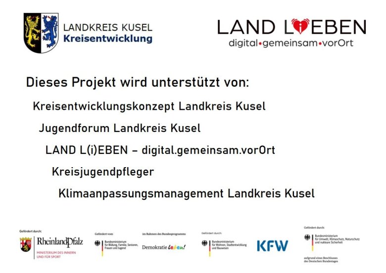 Der Landkreis Kusel lädt daher alle jungen Mitbürgerinnen und Mitbürger im Alter von 12 bis 25 Jahren dazu ein, an der Umfrage teilzunehmen und ihre Meinung einzubringen.